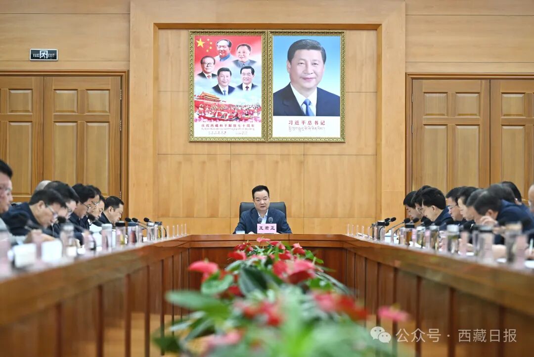 王君正强调,要深入贯彻落实习近平总书记关于西藏工作的重要指示和新时代党的治藏方略,坚持所有发展都要赋予民族团结进步的意义,都要赋予维护统一、反对分裂的意义,都要赋予改善民生、凝聚人心的意义,都要有利于提升各族群众获得感、幸福感、安全感,坚定不移贯彻新发展理念,努力推动西藏经济高质量发展。持续扩大有效投资,牢牢把握发展主动权,坚持项目跟着规划走、资金要素跟着项目走,下大力气抓好重点项目集中攻坚,在项目落地和项目推进上狠下功夫,推动形成更多实物工作量,确保经济发展当前有活力、未来有潜力。加快构建现代化产业体系,立足西藏特色优势资源,推动传统产业转型升级,加强技术改造和创新驱动,提高产品附加值和市场竞争力,积极培育战略性新兴产业和数字经济等新业态,结合实际发展与群众生产生活息息相关的轻工业,提升文旅等产业供给水平,强化品牌建设,为经济发展注入新动力。持续抓好扩大内需,推动大规模设备更新和消费品以旧换新,强化政策的精准性、可持续性,保障消费者合法权益,加快线上线下消费融合,推动供需互促、产销并进。持续优化营商环境,深化“放管服”改革,进一步完善招商引资政策措施,实施招商引资百日攻坚行动,深化“双招双引”工作,做强园区、口岸、保税区、边合区、物流枢纽等开放平台,进一步增强开放活力。做好就业和增收工作,持续拓宽高校毕业生就业渠道,扎实做好重点人群就业工作和低收入群体救助帮扶,细化落实促进城乡居民增收具体措施,发挥重大项目带动就业、培养人才作用,加强职业技能培训和就业服务指导,实现持续稳定增收。