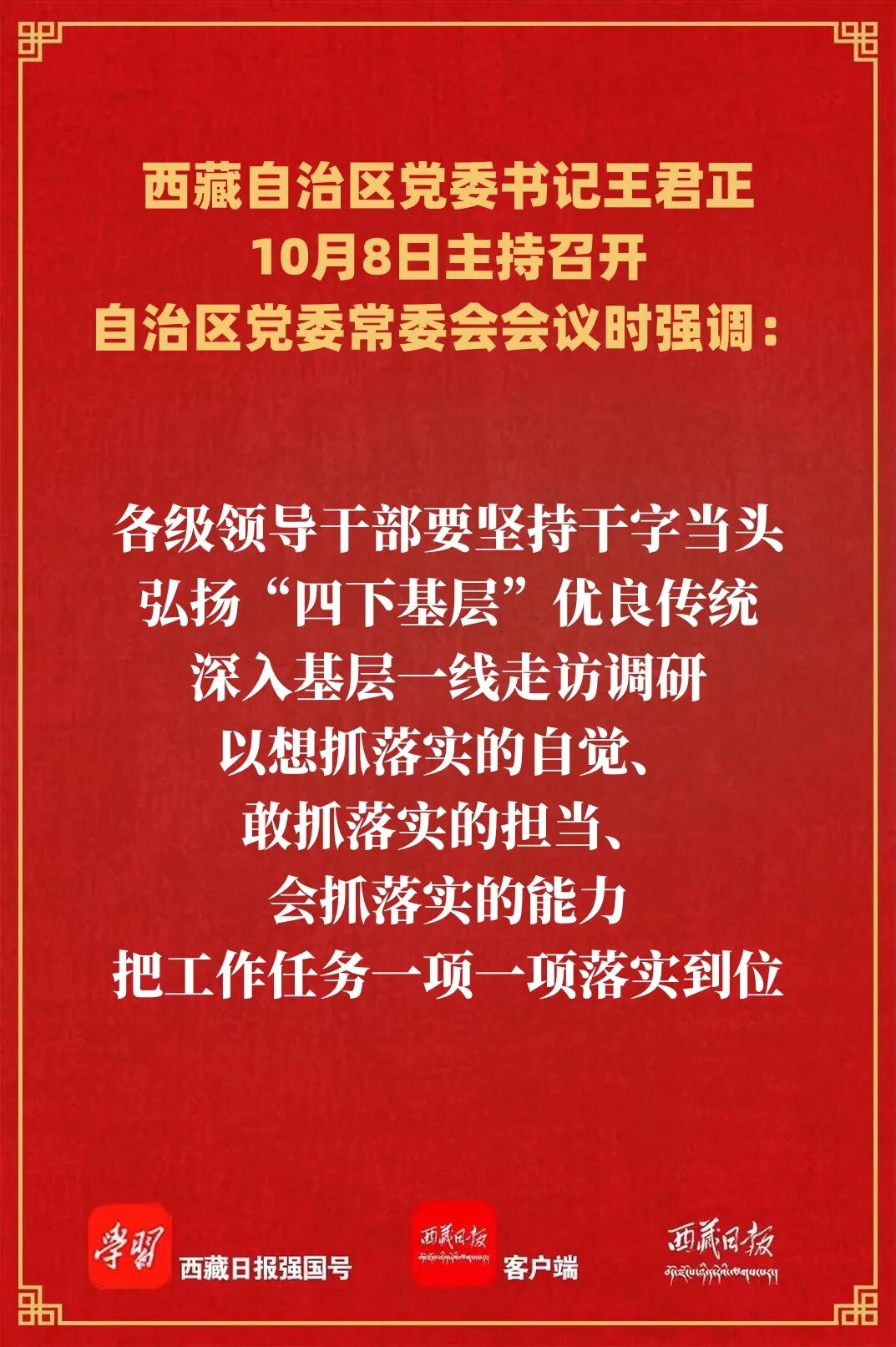 10月8日,自治区党委书记王君正主持召开自治区党委常委会会议,认真传达学习习近平总书记在9月26日中共中央政治局会议上的重要讲话精神,分析研判经济形势,安排部署当前全区经济工作。