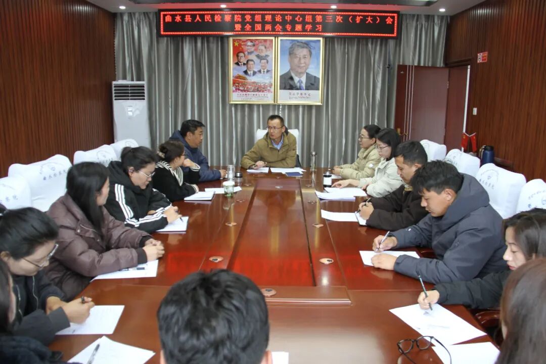 为深入学习贯彻全国两会精神,3月12日,曲水县人民检察院召开党组理论学习中心组第三次(扩大)会暨全国两会精神专题学习会,会议由党组书记、检察长王永祥主持,全体干警参加会议。