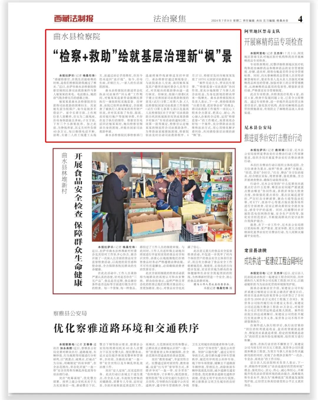 “案件无论大小,皆关民生要事。”“检察监督+司法救助”协同作用,更充分地保障了当事人的合法权益,为身处困境的群众带来一线曙光。曲水县检察院相关负责人表示,下一步,将持续秉持“应救尽救、把好事办好”的理念,将司法救助工作视作一项民心工程来全力落实,把真心、耐心、热心融入办案的全过程,运用“检察监督+”的工作模式,高质高效办好每一个案件,充分借助法治思维和法治方式,用心用情化解矛盾纠纷,共同描绘基层治理的新“枫”景。